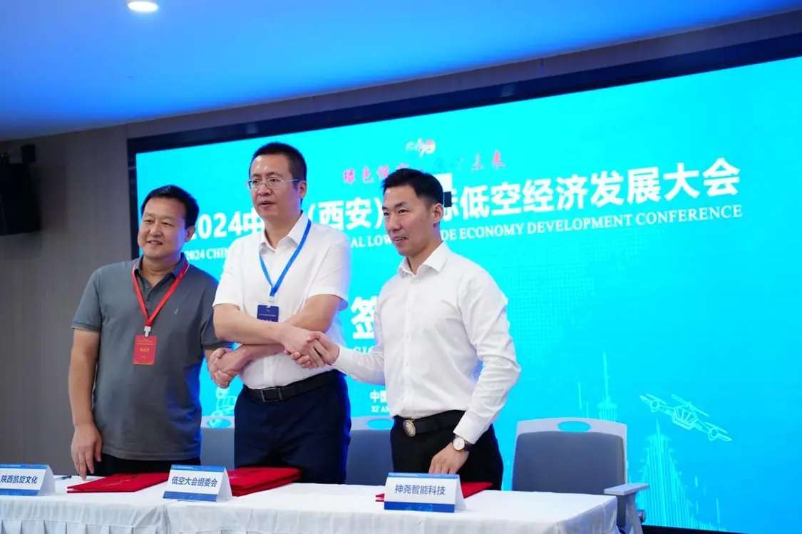 发布会现场,2024中国(西安)国际低空经济发展大会组委会与珠海一航会展有限公司、四川朝东航空地面服务集团有限公司签订了战略性合作协议,与上海神尧智能科技有限公司、陕西凯旋文化旅游集团公司签订了意向性合作协议,同时与西安世园旅游汽车公司、西安浐灞喜来登酒店、西安浐灞万枫酒店及6家展位搭建商签订大会服务相关协议。系列合作协议的签订,展现了行业内外对于低空经济未来发展的坚定信心和决心,也为低空大会的成功举办奠定了坚实基础。
